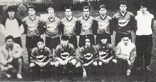 Accroupis de gauche à droite: Cédric Jalouneix, X, X, Eric Mazière, Eric